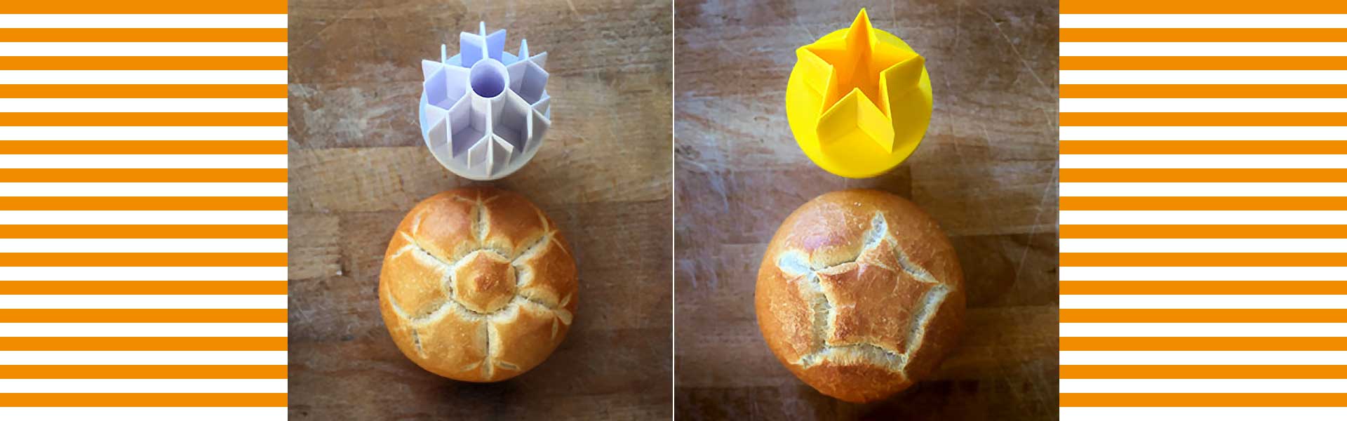 Snowflakes, stars, and many other motifs provide beautiful, clearly recognizable patterns on smooth bread rolls from wheat and mixed wheat dough with good crust break. Irrespective of whether you stamp in the cup or on the belt, we produce all the motifs you desire for every stamping station of the WP Kemper bread roll systems EVOLUTION, PANE, QUADRO FILIUS, and MINI QUADRO ROUND. Delivered as a finished tool, the stamps are easily inserted with only a few turns of the hand.